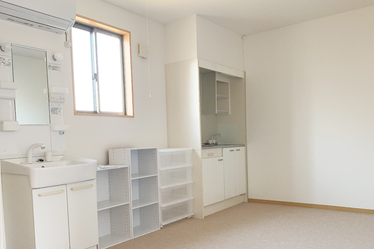 6畳の洋室には、キッチンと洗面台が備え付けとなっています。