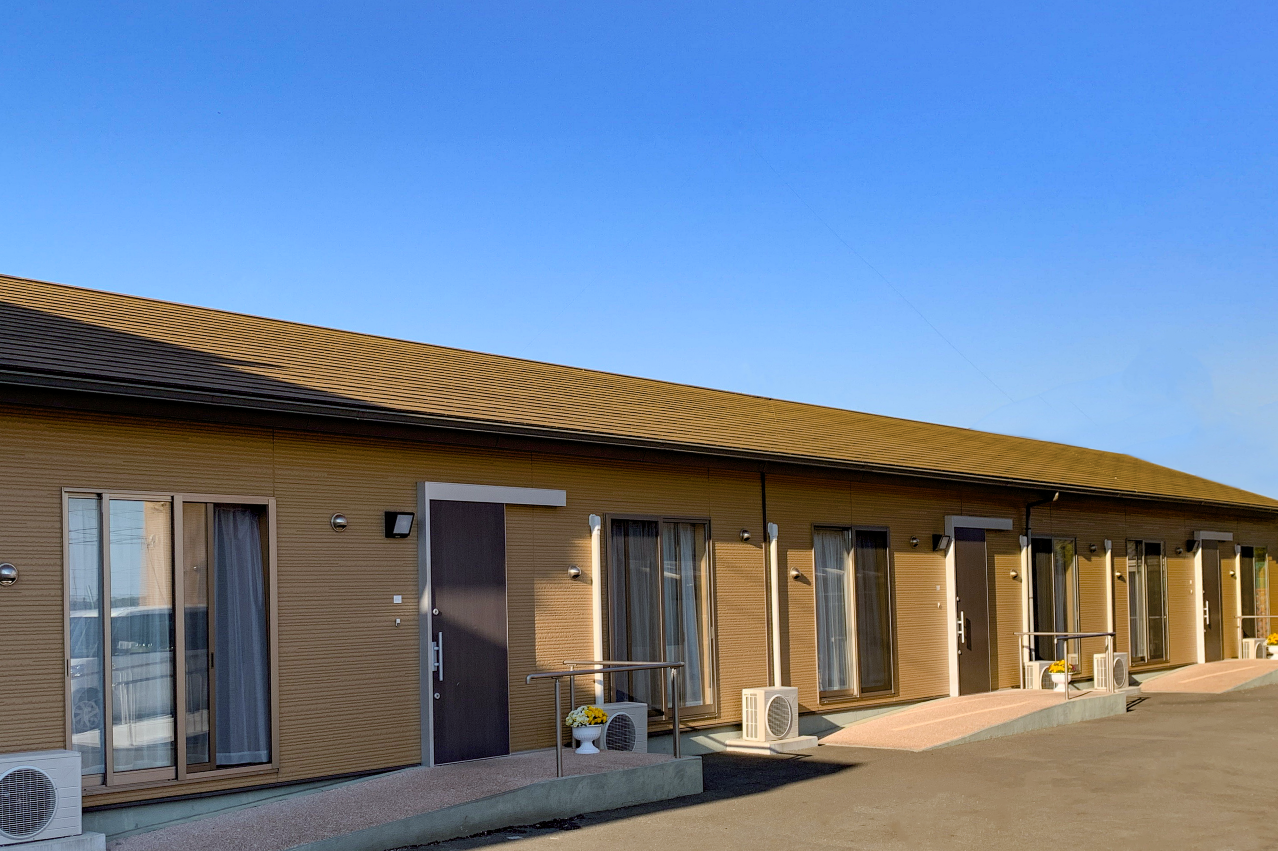3部屋が1ユニットの3戸を繋げた平屋造りになっています。平屋建ての建物は移動が楽なだけでなく、災害時の避難もスムーズにしていただけます。